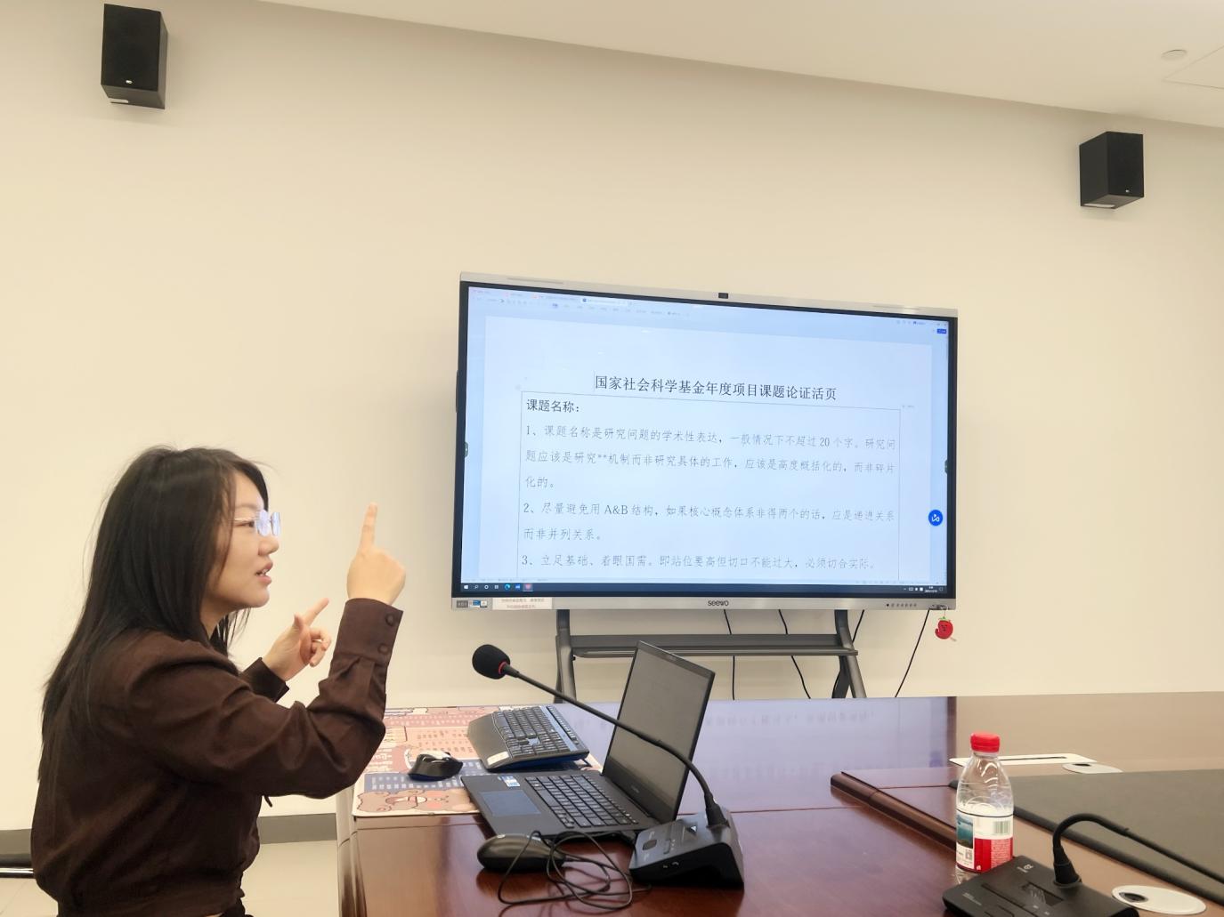 随后,教育科学学院李慧博士作为成功获批全国教育科学规划专项项目的青年学者,以申报书七大核心部分为框架,分享了创新点提炼、预期成果多样化设计、代表性前期成果筛选及参考文献规范引用等技巧,为参会者提供了可直接借鉴的实践路径。